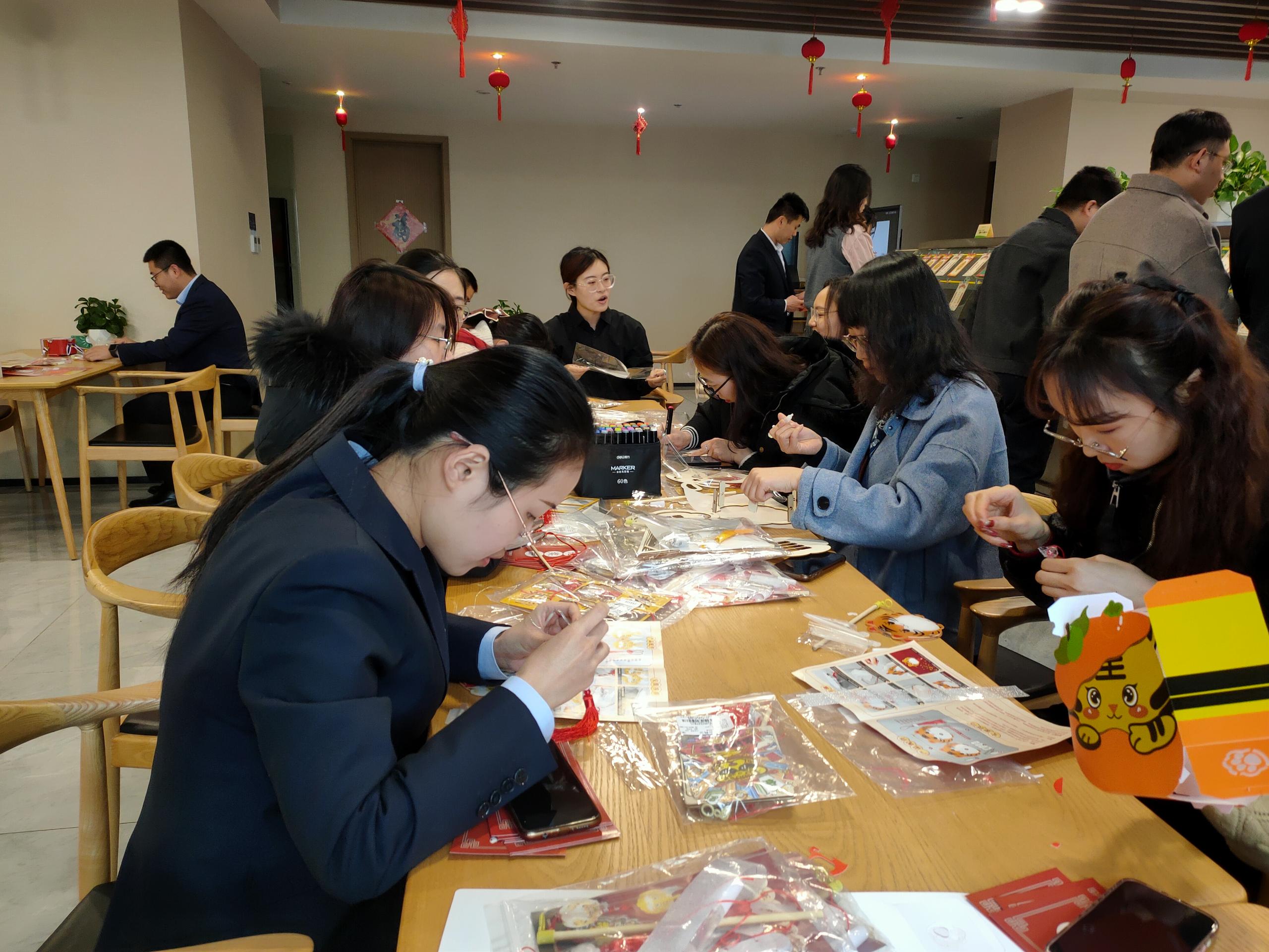 “風(fēng)乍起,吹起一池春水(打一網(wǎng)絡(luò)平臺)”、“杜鵑聲聲杜鵑開(打一成語)”、“二三四五六七八九(打一成語)”、“氙氚(打一成語)”……燈謎迷面既有節(jié)日元素,也有字謎、成語等內(nèi)容,一個個飽含寓意的燈謎讓集團(tuán)各部門員工在字謎前駐足凝神,思索良久后滿心歡喜地摘下自己猜中的謎面,前往兌獎區(qū)核對謎底,猜對謎者均可領(lǐng)取兌獎券,換取禮品。