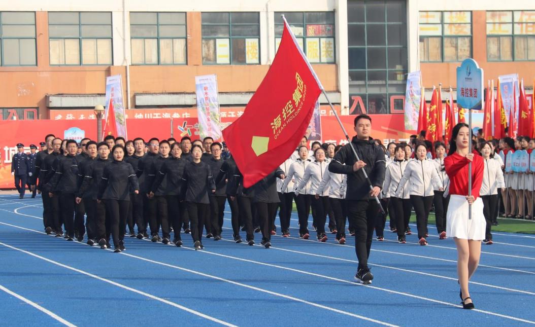 開幕式上,??丶瘓F方隊著裝統一、意氣風發。在集團旗幟引領下,邁著鏗鏘有力的步伐,喊著響亮的口號,精神飽滿地通過主席臺接受檢閱,以颯爽的英姿,向全區展現了??厝藰酚^、活力、進取的精神面貌。